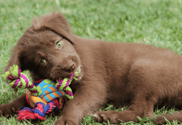 Some puppies love grabbing clothing or toys and tugging.