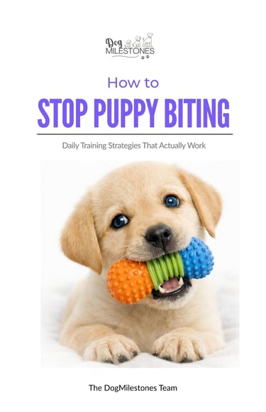 If you’re dealing with constant nipping, ankle biting, or the infamous “landshark phase,” the Dog Milestones™ Puppy Biting Guide Series was designed specifically for overwhelmed puppy owners.