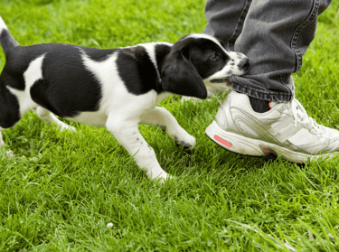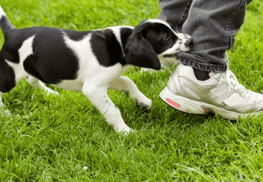 If your puppy grabs your ankles, sudden reactions can make the behavior more exciting.
